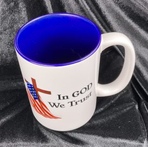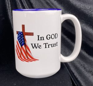 Crafted from durable ceramic, this mug is designed for everyday convenience—microwave safe for easy reheating and dishwasher safe for quick cleanup. Whether you’re enjoying your morning coffee or displaying it as part of your patriotic décor, this mug is a bold statement of faith, freedom, and gratitude.