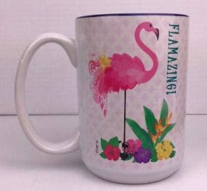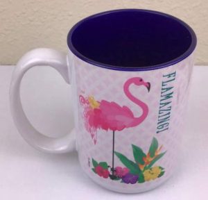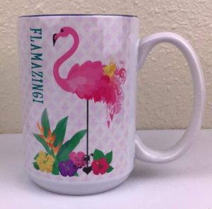 - From SassyXpressions – Original flamingo mug design with colorful tropical flair and “FLAMAZING!” printed on the side
