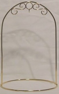 a bit more than 8 inches Tall with a hanging height of a bit more than 6 inches. Base is approximately 6 inches wide and 5 inches deep. Provides a stable base to display your Ornaments. Plated with 24k gold.