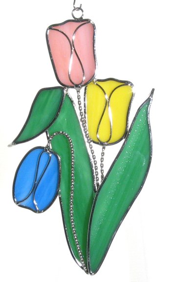 Made from real stained glass and plated with a silver finish. Approximately 7 inches tall by 4 inches wide.
