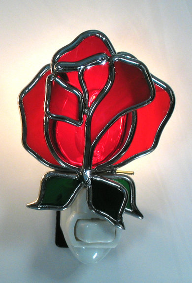 Red Rose Stained Glass Night Light